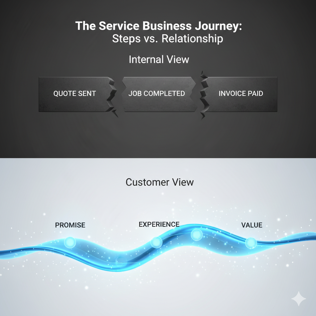 But most service businesses don’t actually have a lifecycle. They have steps. Disconnected checkpoints.